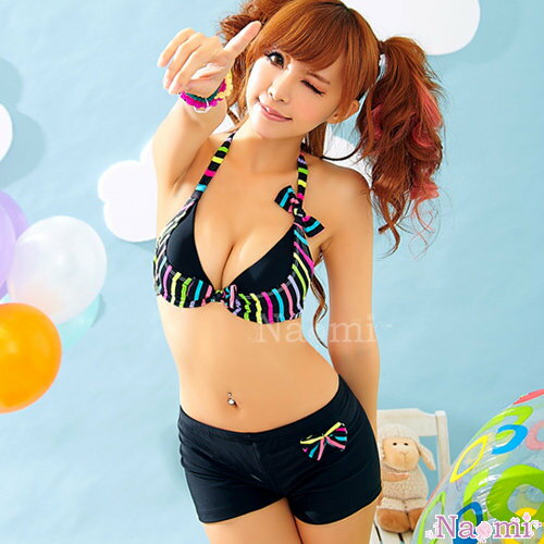 【資料來源 / 版權 與 商品購買網址】派對女孩!艷彩條紋二件式泳裝組NA13070026 ☆艾莉莎☆ 免運